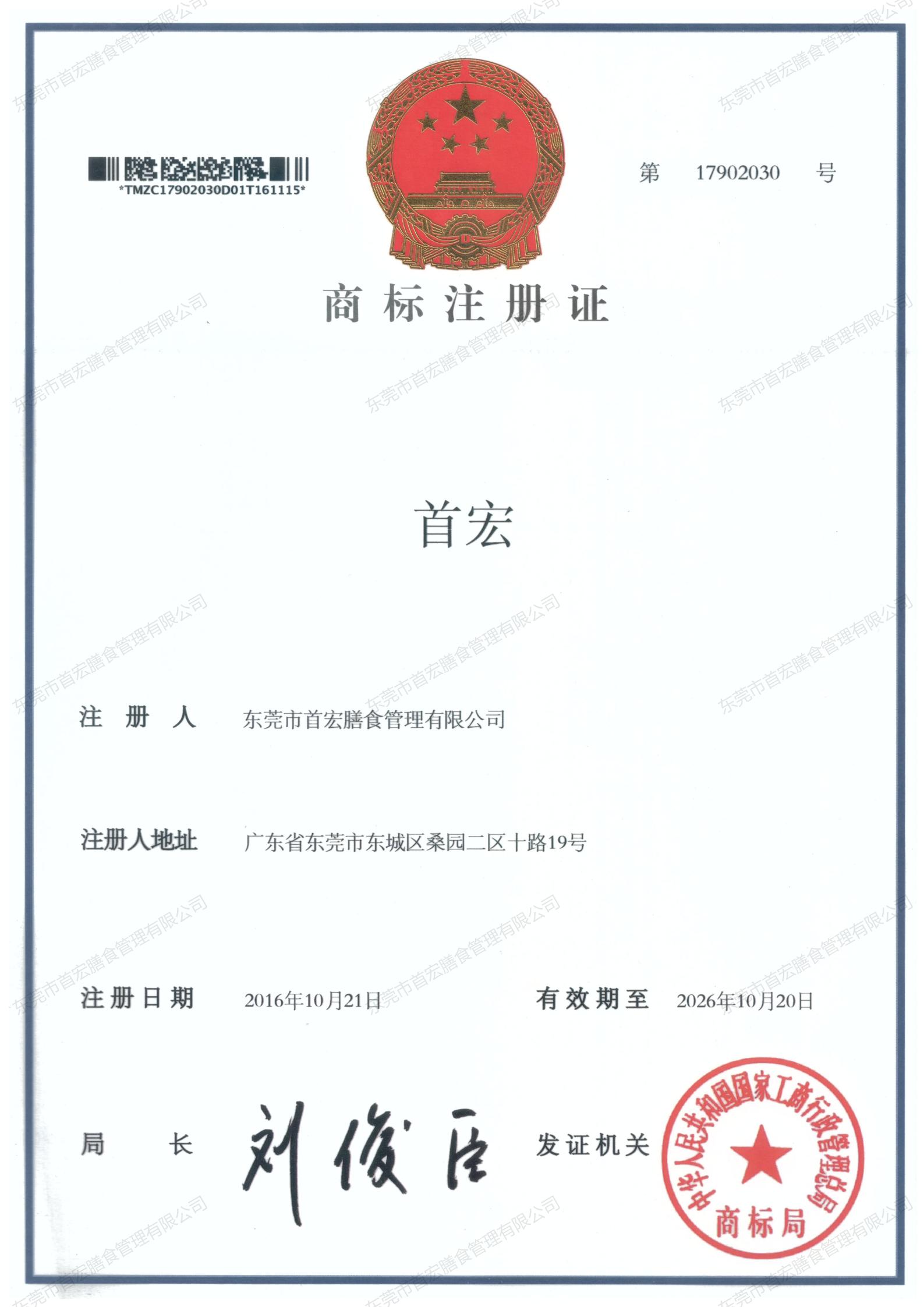 首宏商標(biāo)證書(shū)